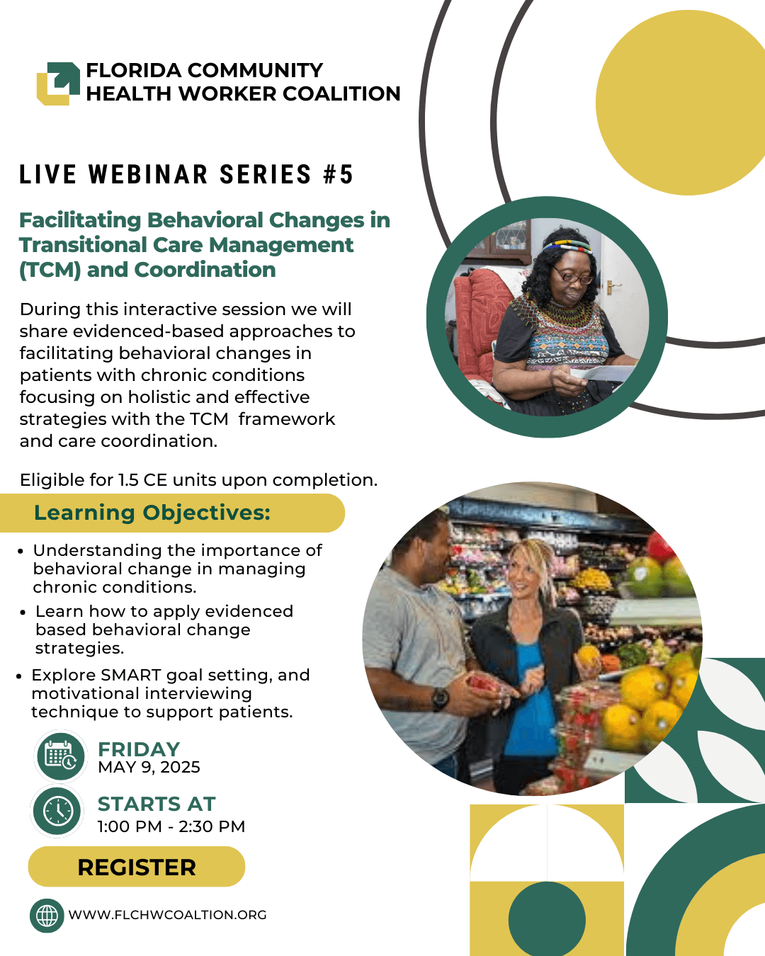 The next interactive session in this webinar series explores evidence-based strategies for supporting behavioral change in patients with chronic conditions, with a focus on Transitional Care Management (TCM) and care coordination. Participants will learn practical tools like SMART goal setting and motivational interviewing to enhance patient engagement and outcomes. Participants will earn 1.5 CE units.